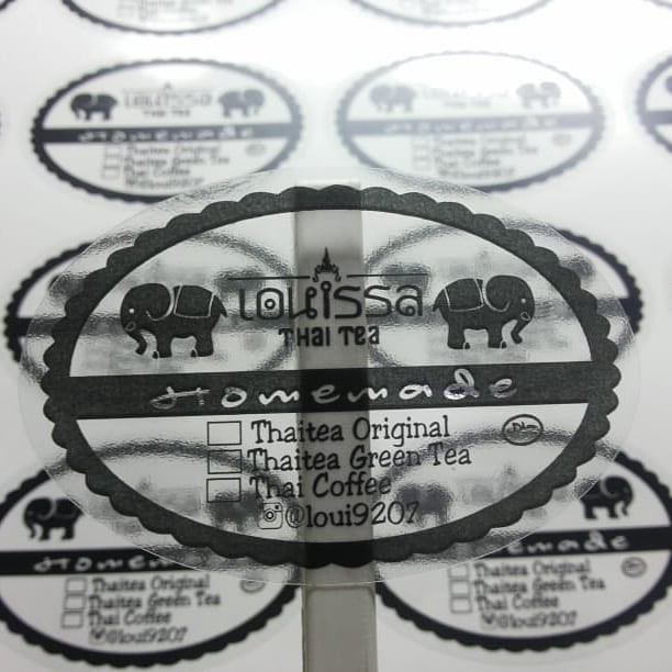 Untuk kemasan minuman thai tea, salah satu yang bisa dipilih untuk label kemasan minuman yaitu menggunakan stiker vinyl.
